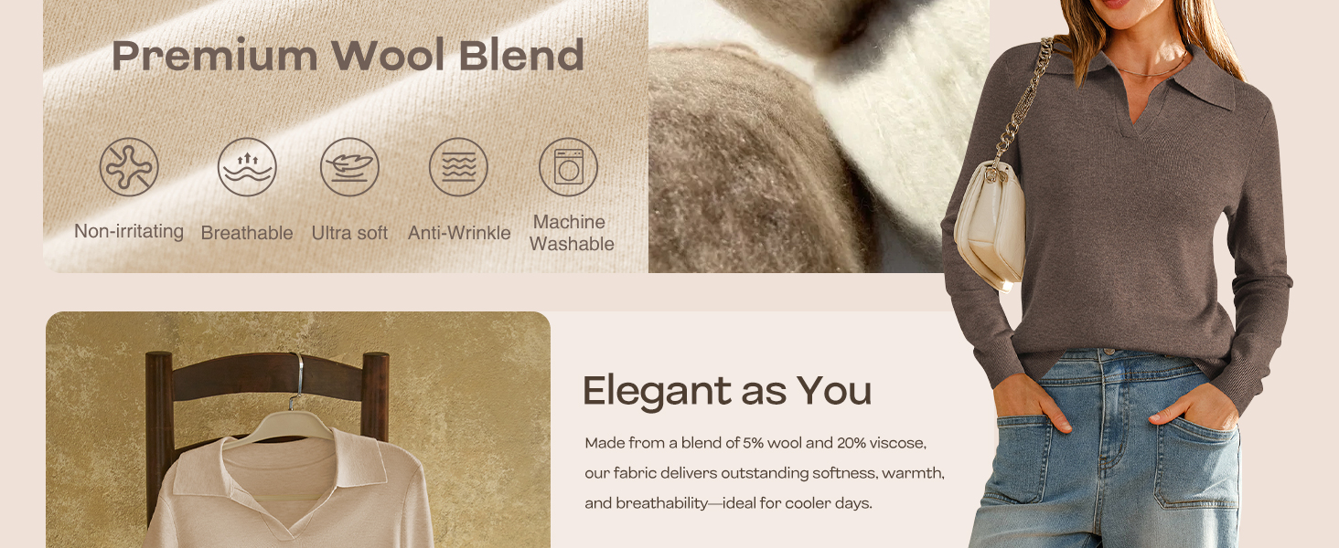 • Arach&Cloz Women��s Wool Blend Polo Shirts Fall Sweaters Business Casual Outfits 2025