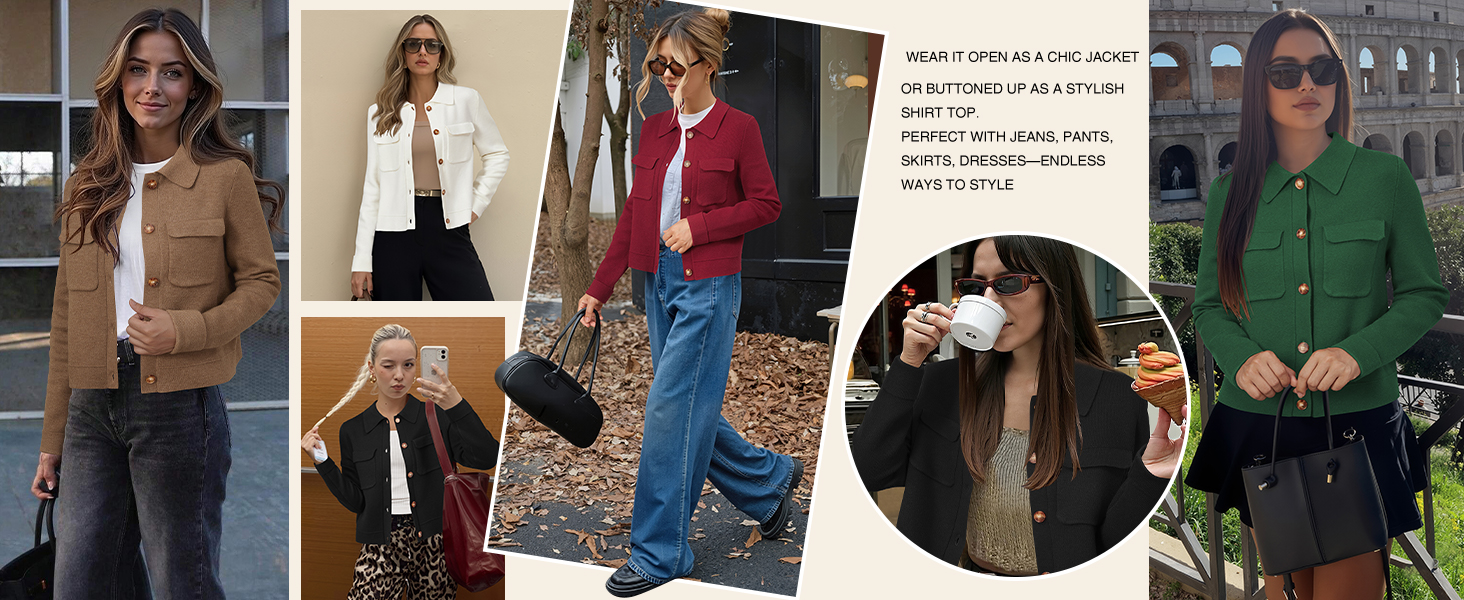 Women's Fashion Cropped shackets Stylish Button Down Sweater Jacket