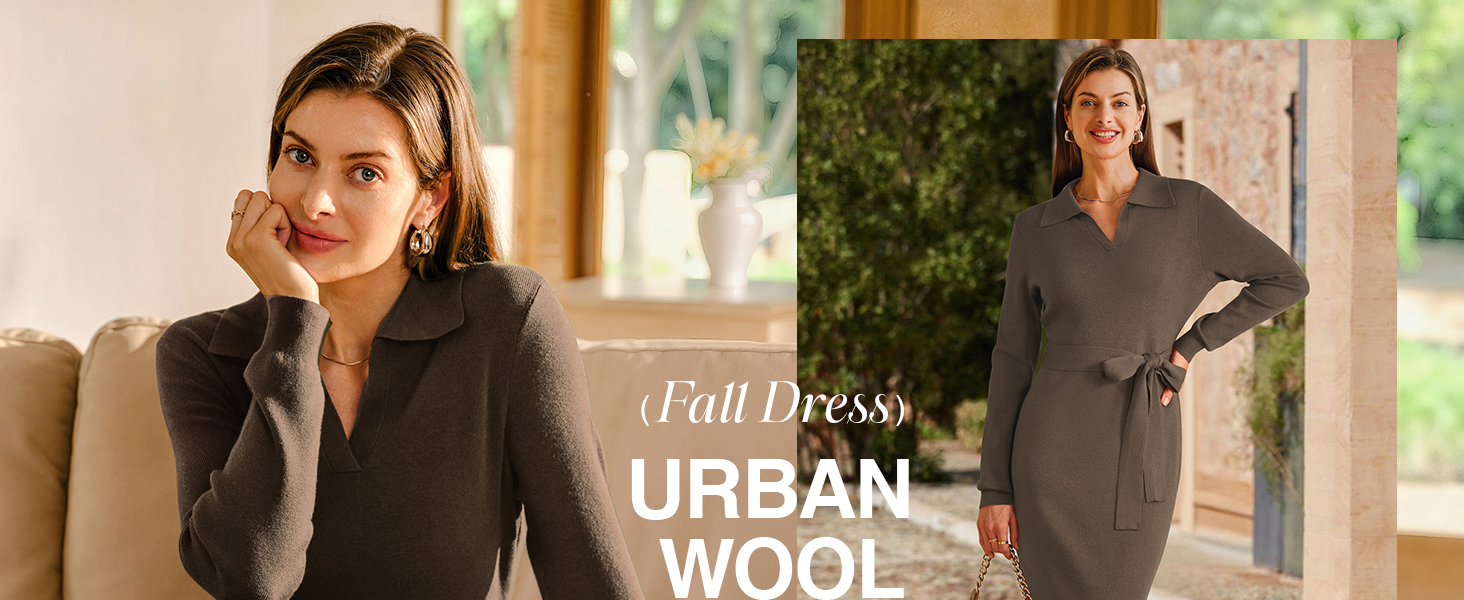 • Arach&Cloz Women's Wool Blend Side Slit Polo Sweater Dresses 2025 Fall Business Casual Outfits