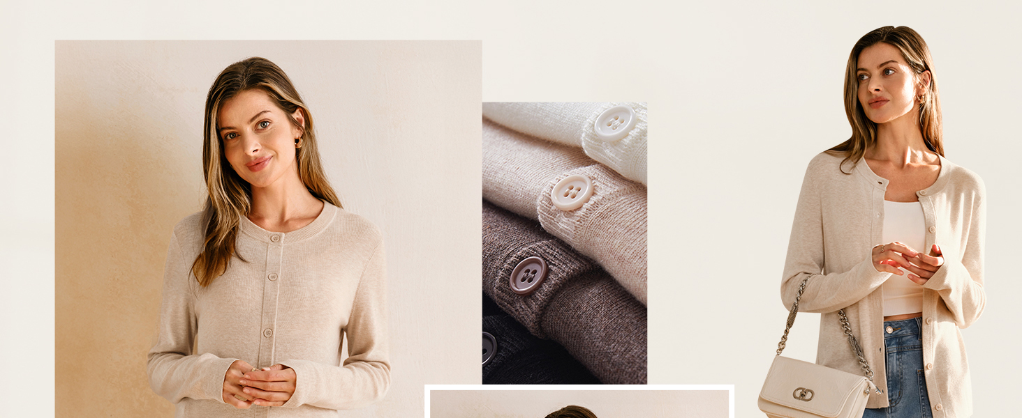 • Arach&Cloz Women's Wool Blended 2025 Fall Cardigan Sweaters Lightweight Long Sleeve Business Casual Outfits Top
