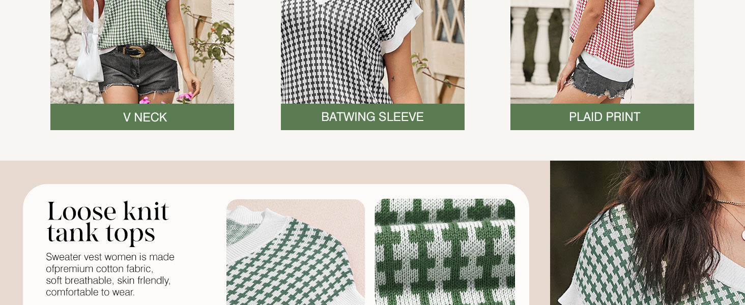 • Dokotoo Womens Casual Summer Tops V Neck Short Sleeve Plaid Knit Vest Loose Fit Pullover Sweaters Blouses
