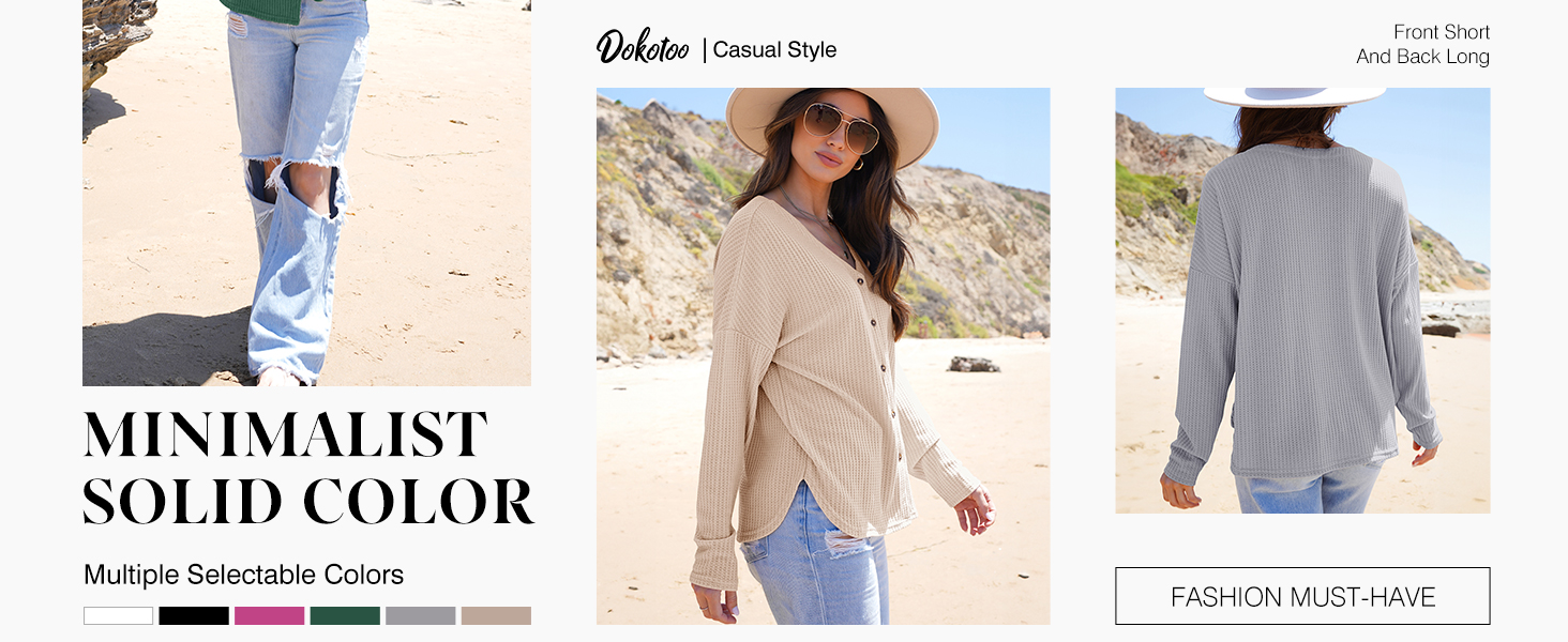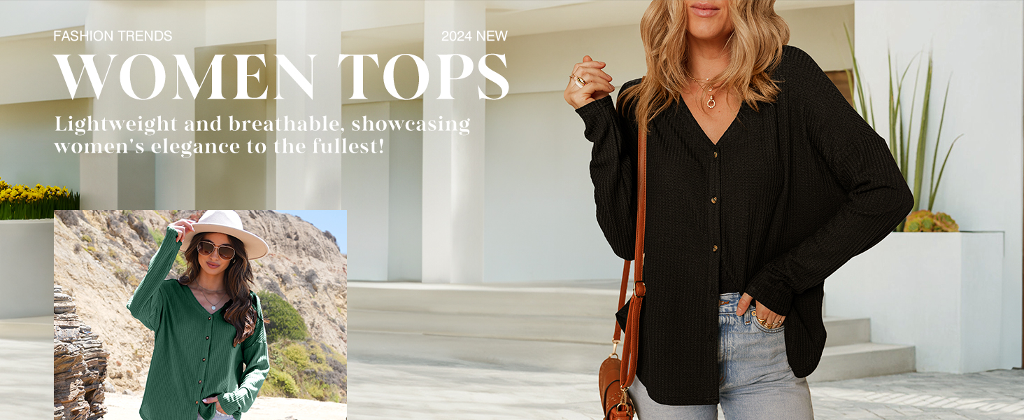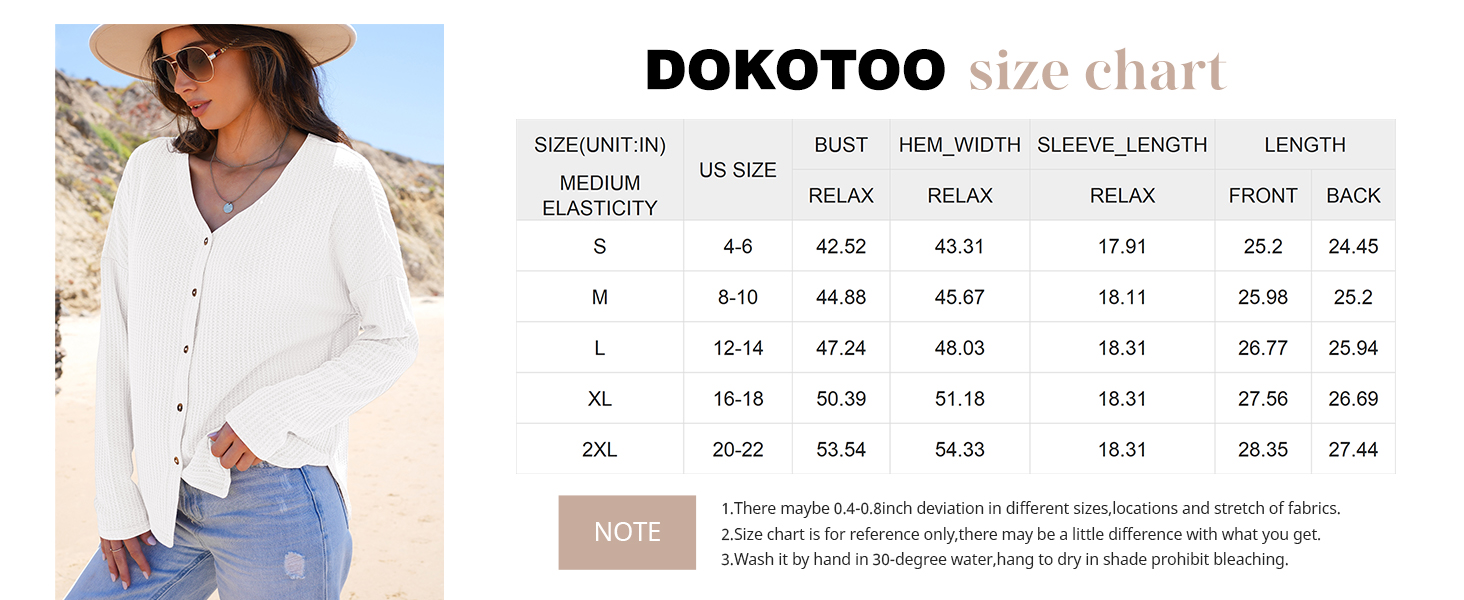 • Dokotoo Women's Casual V Neck Waffle Knit Button Down Long Sleeve Shirts Loose Tops
