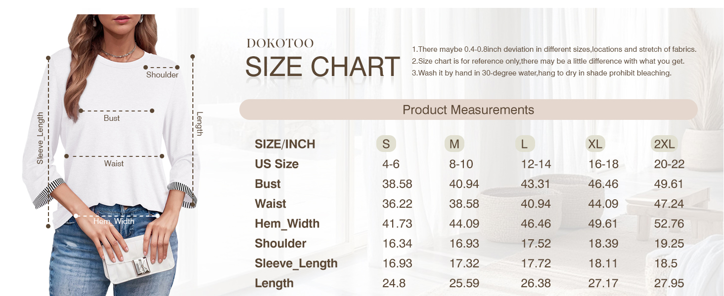 • Dokotoo Women's Shirts Lightweight 2025 Summer Fall Fashion 3/4 Length Sleeve T Shirts Casual Tops Basic Blouses