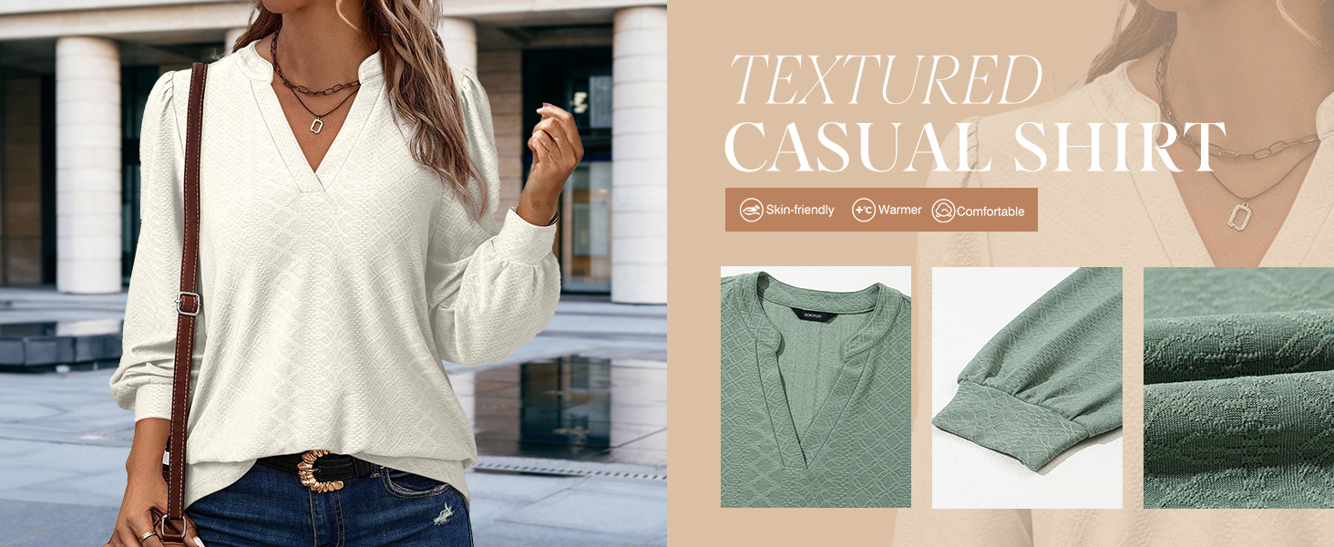Dokotoo Spring Tops for Women Dressy Casual 2025 V Neck Long Sleeve Blouses