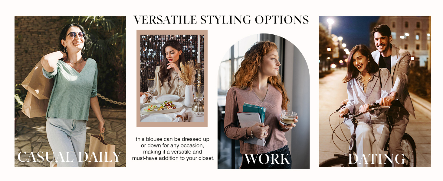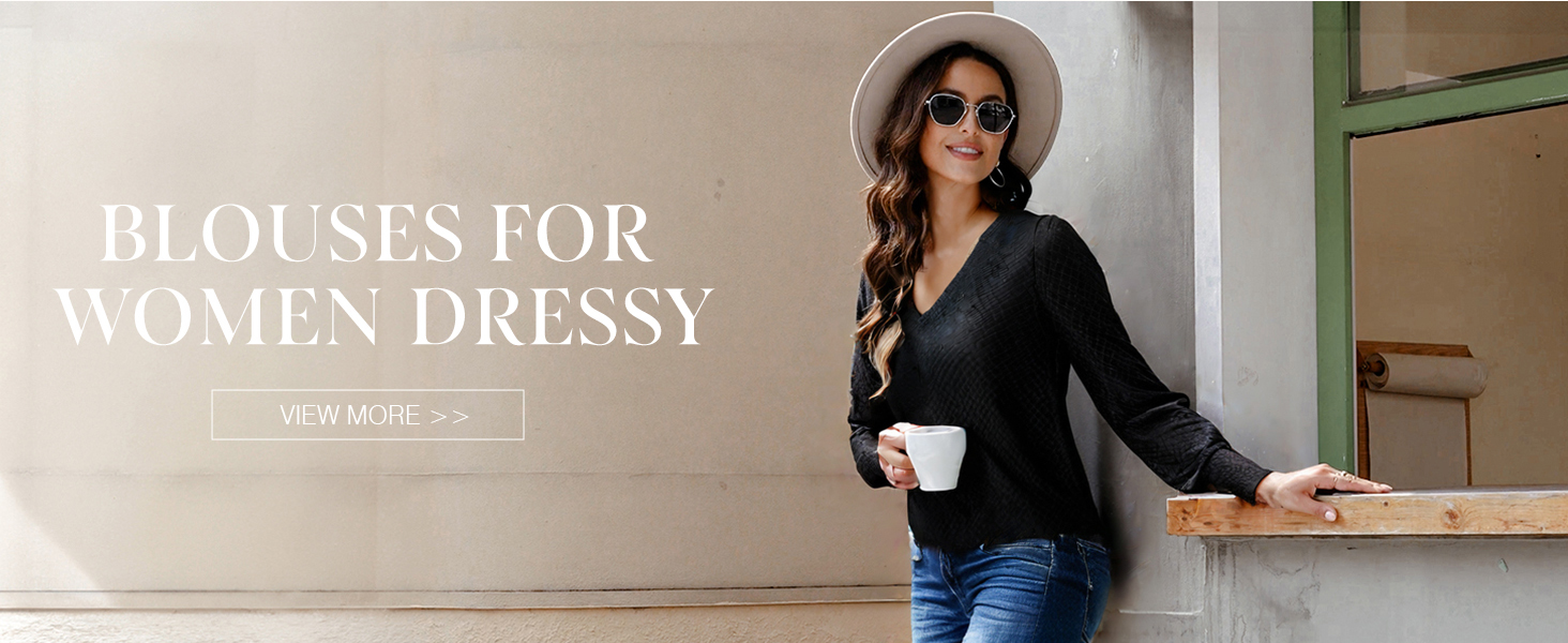 Dokotoo Womens Tops V Neck Long Sleeve Business Casual Outfits for Women