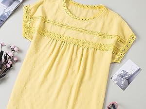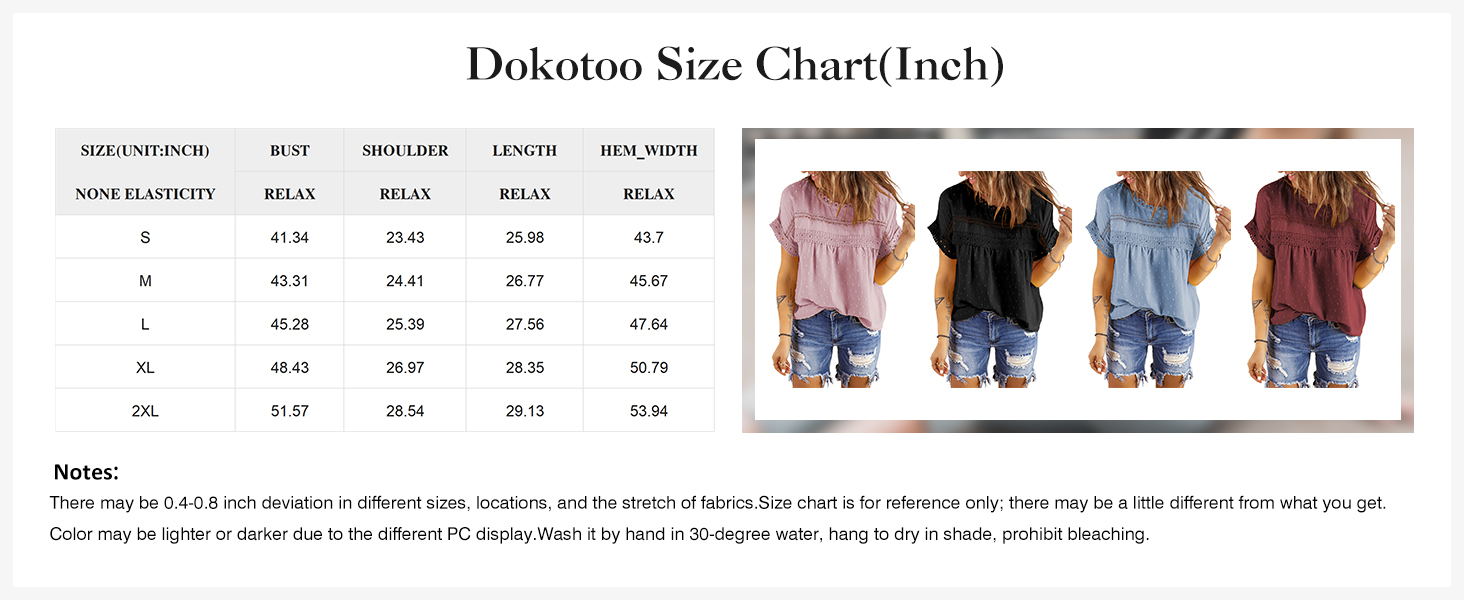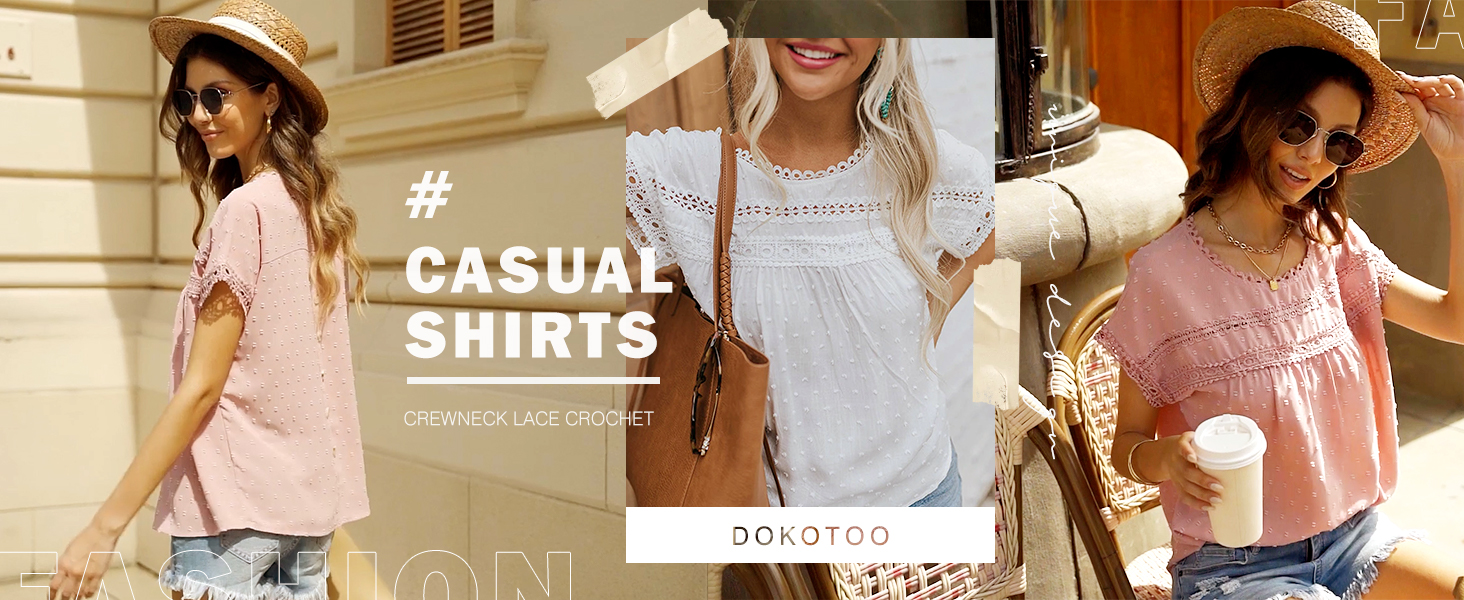 • Dokotoo Womens Summer Tops Crewneck Lace Crochet Short Sleeve Shirts Casual Chiffon Blouses