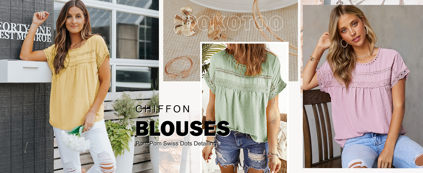 Dokotoo Pom Pom Chiffon Babydoll Shirts for Women