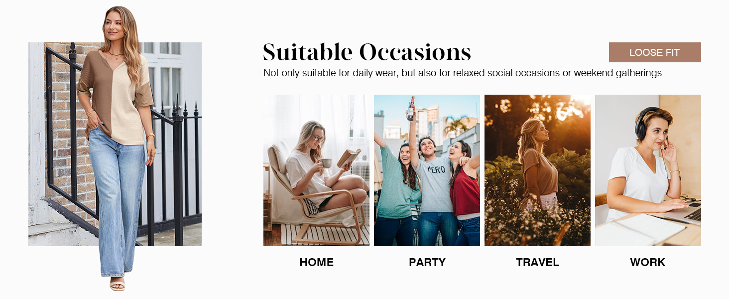 Dokotoo Half Sleeve Waffle Knit V Neck Patchwork Blouses