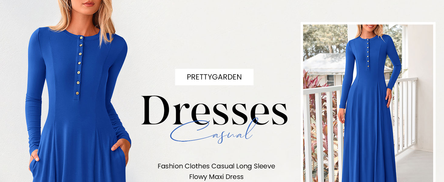 • PRETTYGARDEN Maxi Dresses for Women 2025 Fall Casual Long Sleeve Button Fit and Flare Long Flowy Going Out Dress