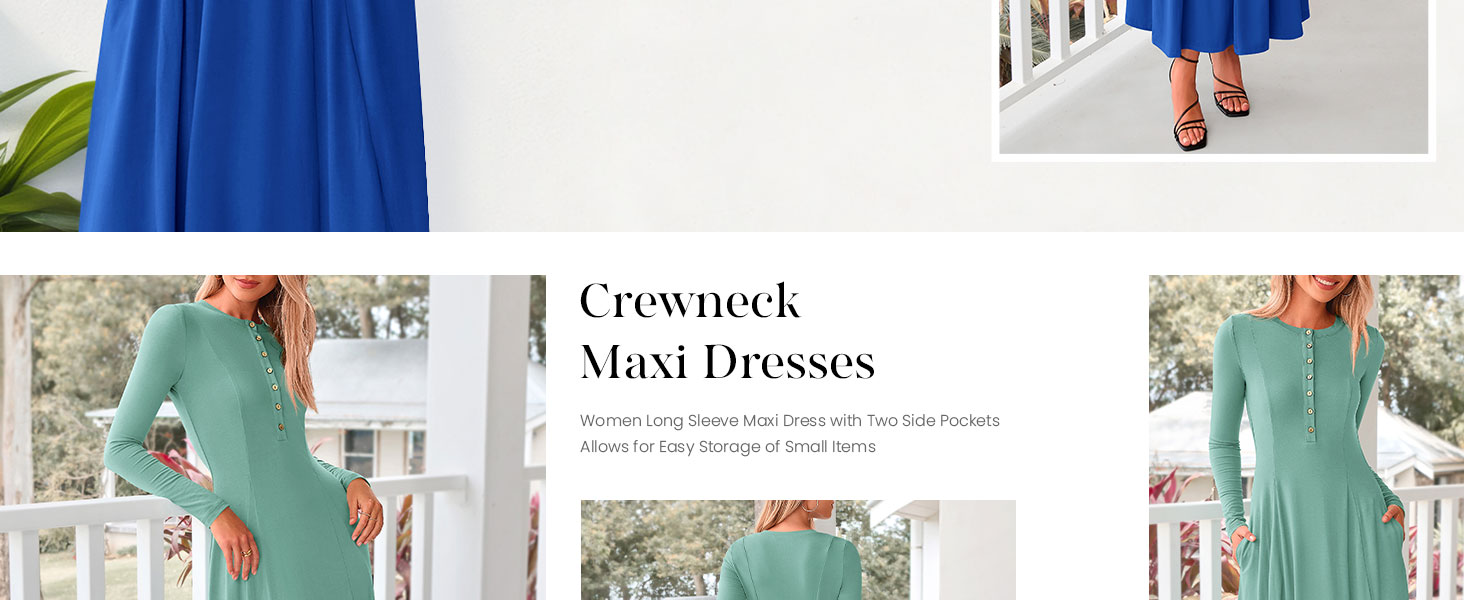 PRETTYGARDEN Going out Dress for Women Long Sleeve Crewneck Maxi Dresses
