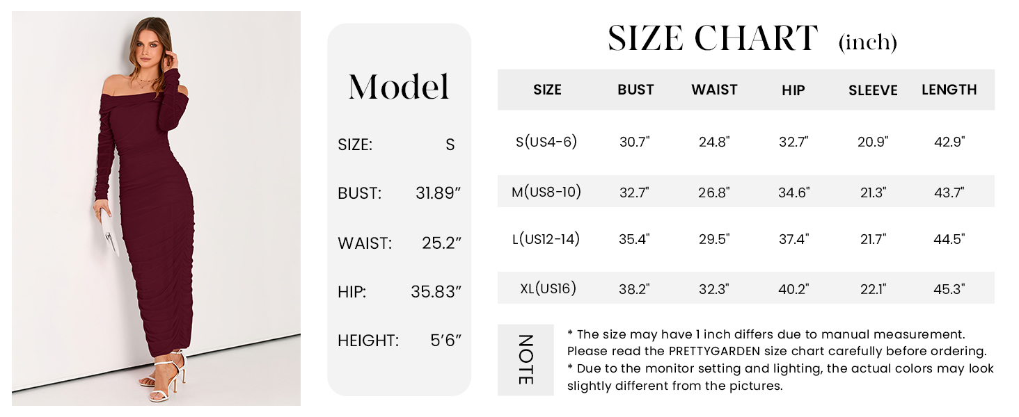 • PRETTYGARDEN Women's Fall Off The Shoulder Maxi Dress Spring Long Sleeve Ruched Fitted Bodycon Club Dresses with Slit