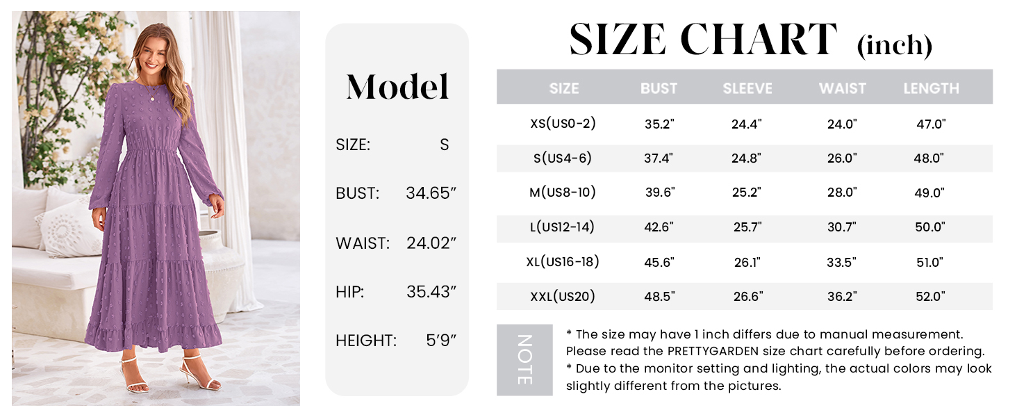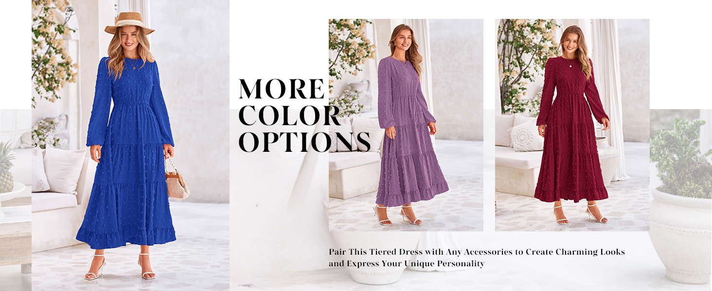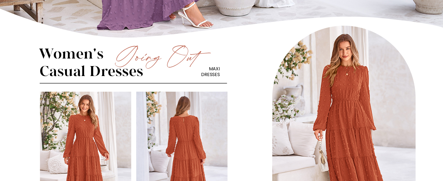 PRETTYGARDEN Long Sleeve Maxi Dresses for Women Fashion Swiss Dot Dress