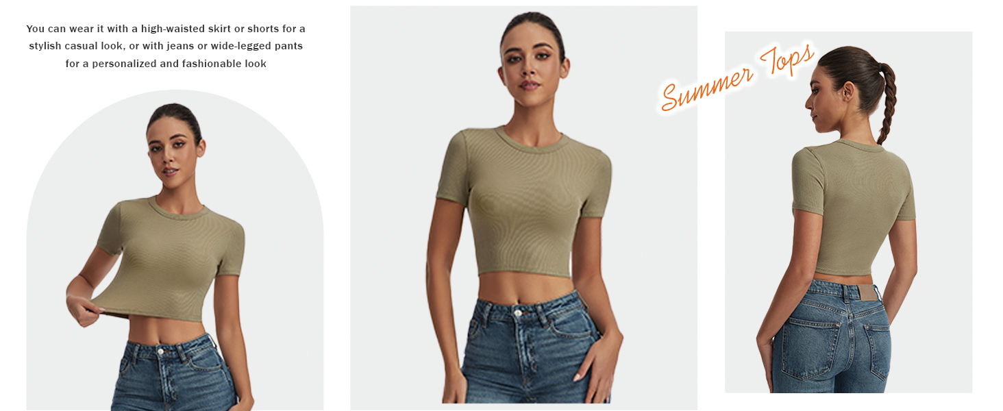 • Short Sleeve Crop Tops for Women Classic Ribbed Slim Fit T-Shirt Summer 2025 Trendy Basic Tee