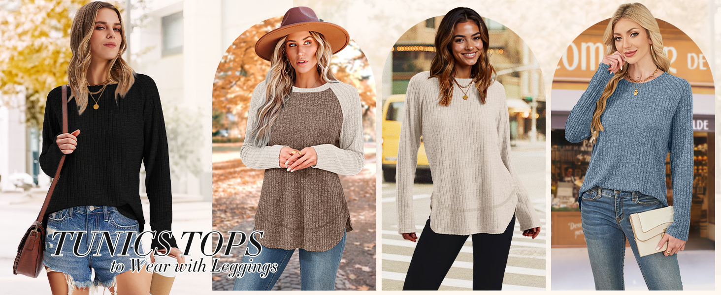 Tunics or Tops to Wear with Leggings Long Sleeve Shirts Round Neck Fall Sweaters