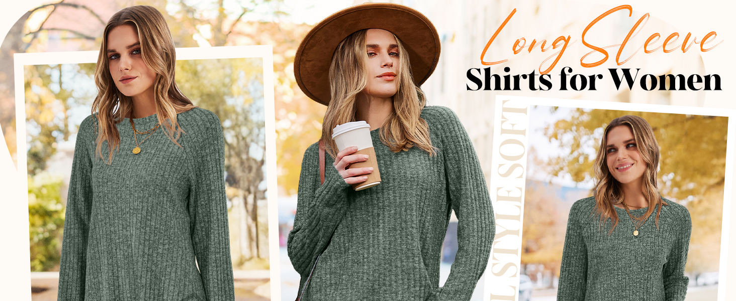 Long Sleeve Shirts for Women Casual Tops Fall Fashion Sweaters Lightweight
