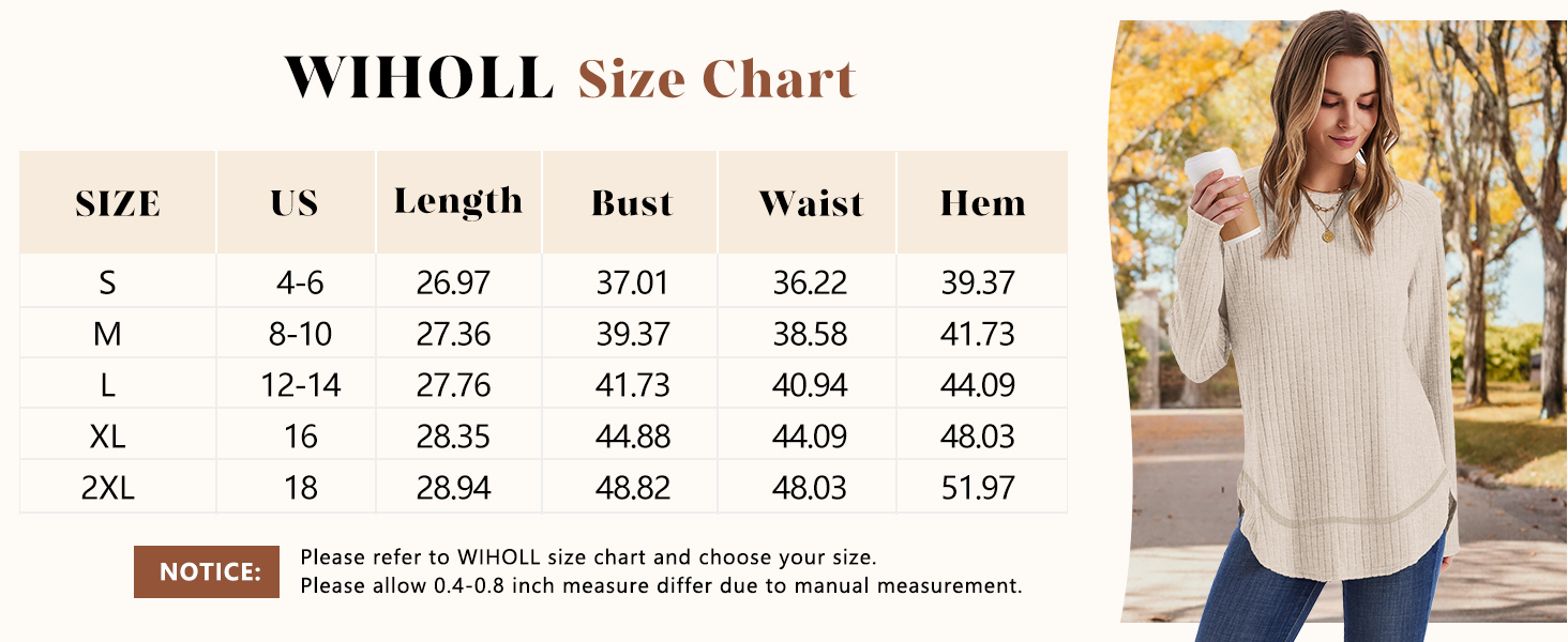 WIHOLL Long Sleeve Shirts for Women Fall Sweaters 2025 Lightweight Casual Tunic Tops Loose Fit Winter Clothing S-2XL