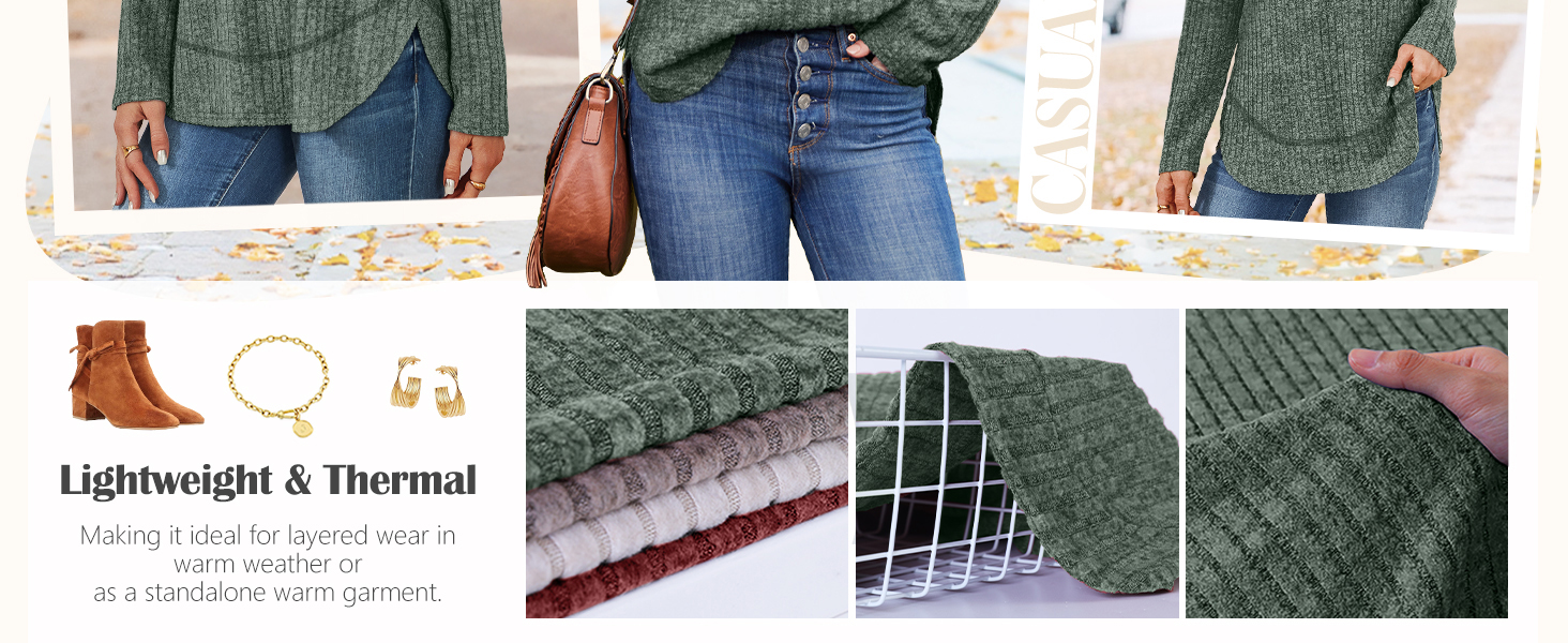 Womens Long Sleeve Tops Fall Shirts Ribbed Lightweight Tunic Sweaters Loose Fit