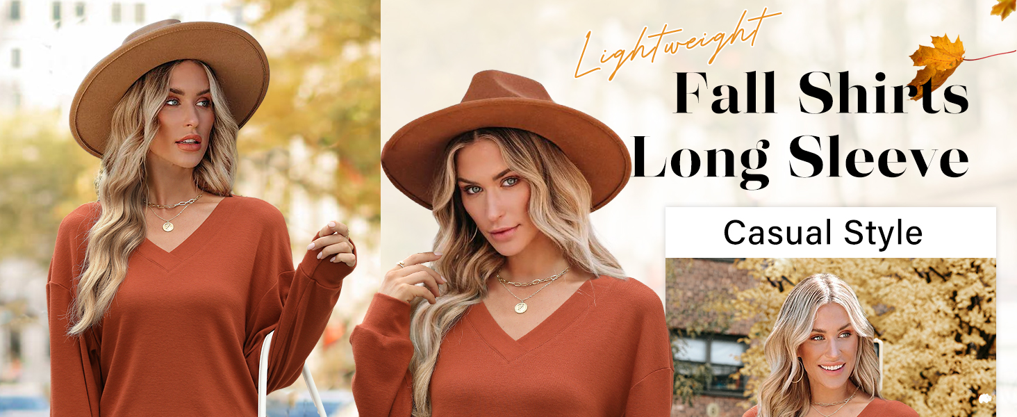 • WIHOLL Long Sleeve Shirts for Women V Neck Tops Tunic Fall Winter Sweatshirts 2025 Clothes