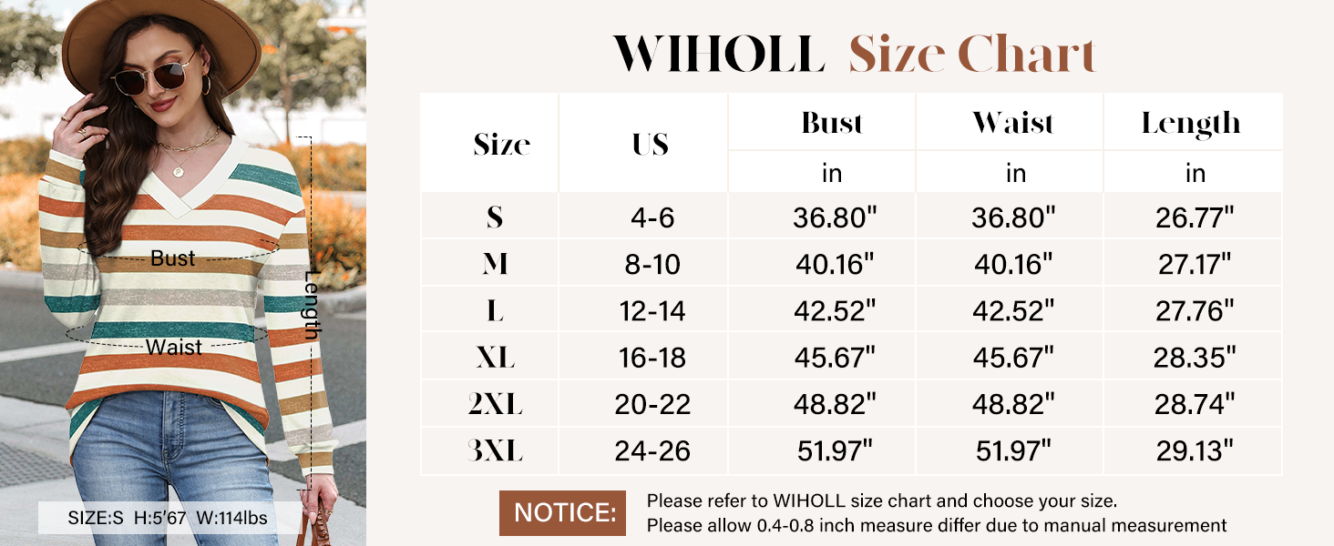 WIHOLL Long Sleeve Shirts for Women V Neck Tops Tunic Fall Winter Sweatshirts 2025 Clothes