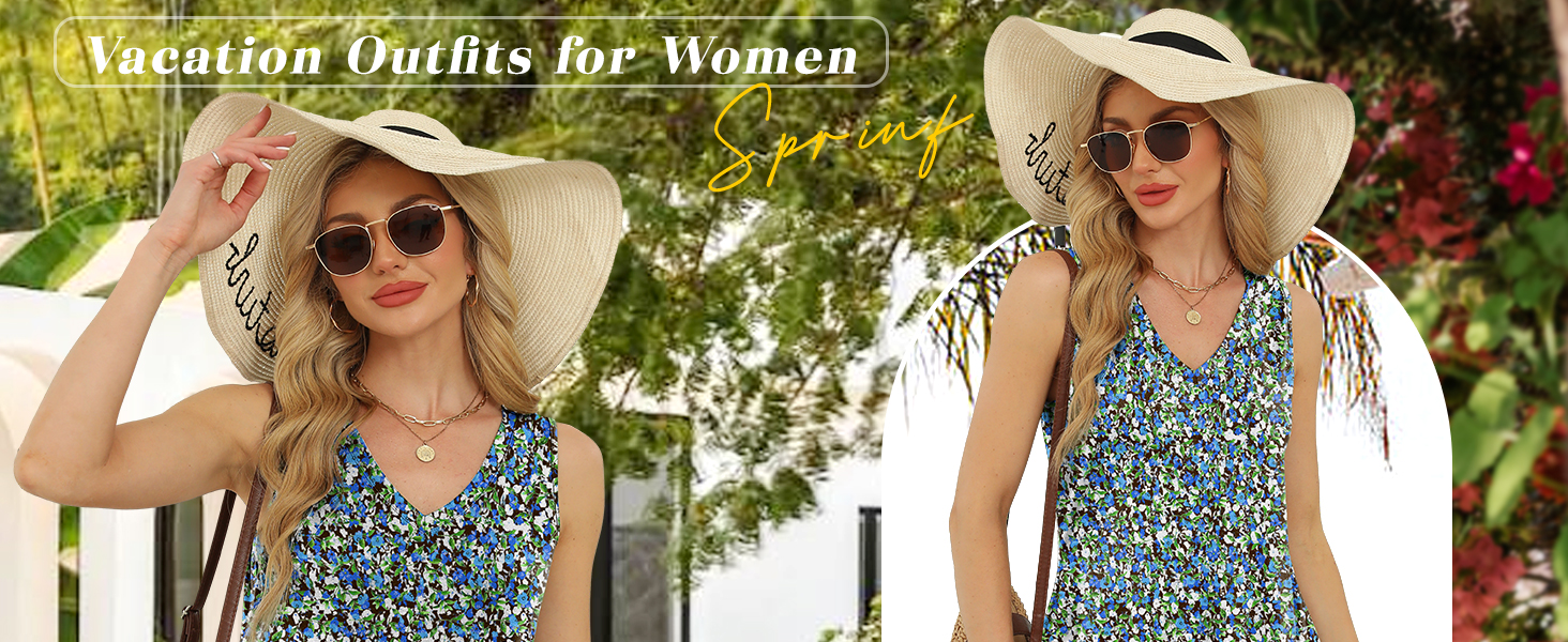 Casual Summer Dresses for Women V Neck Vacation Tank Dresses Resort