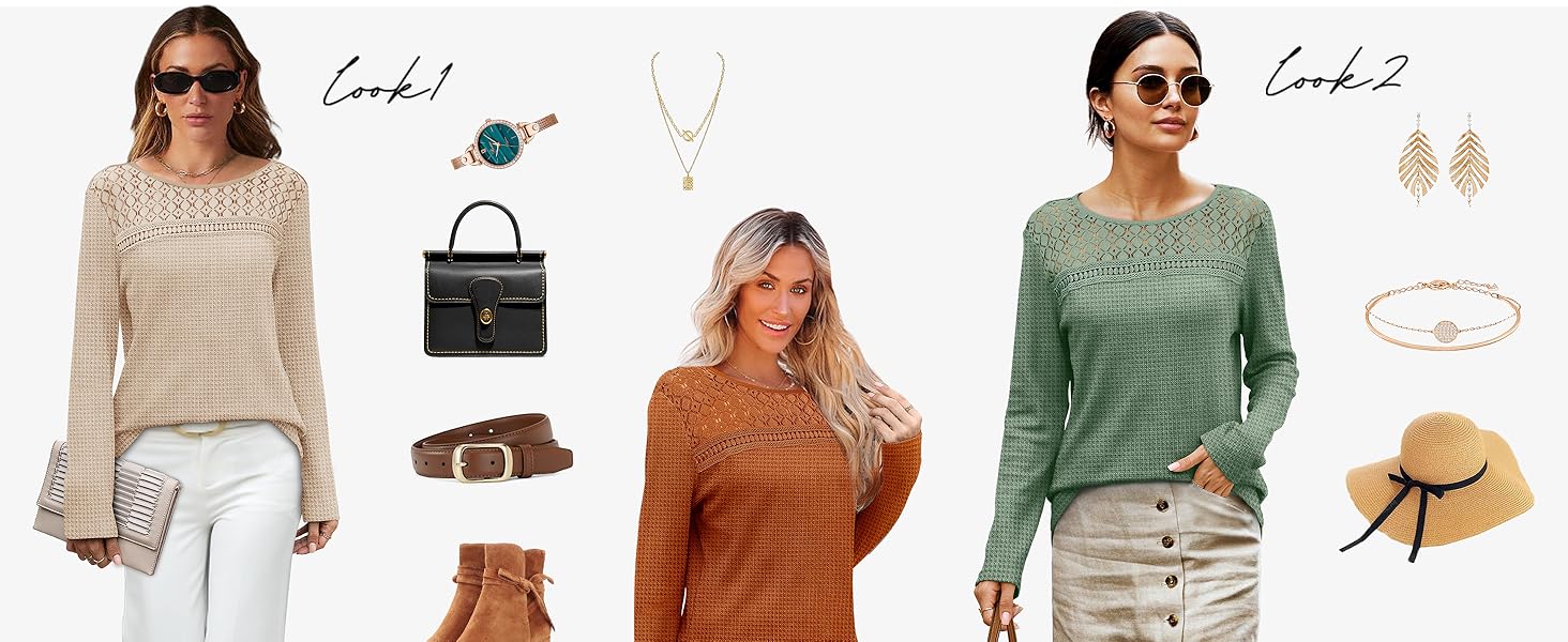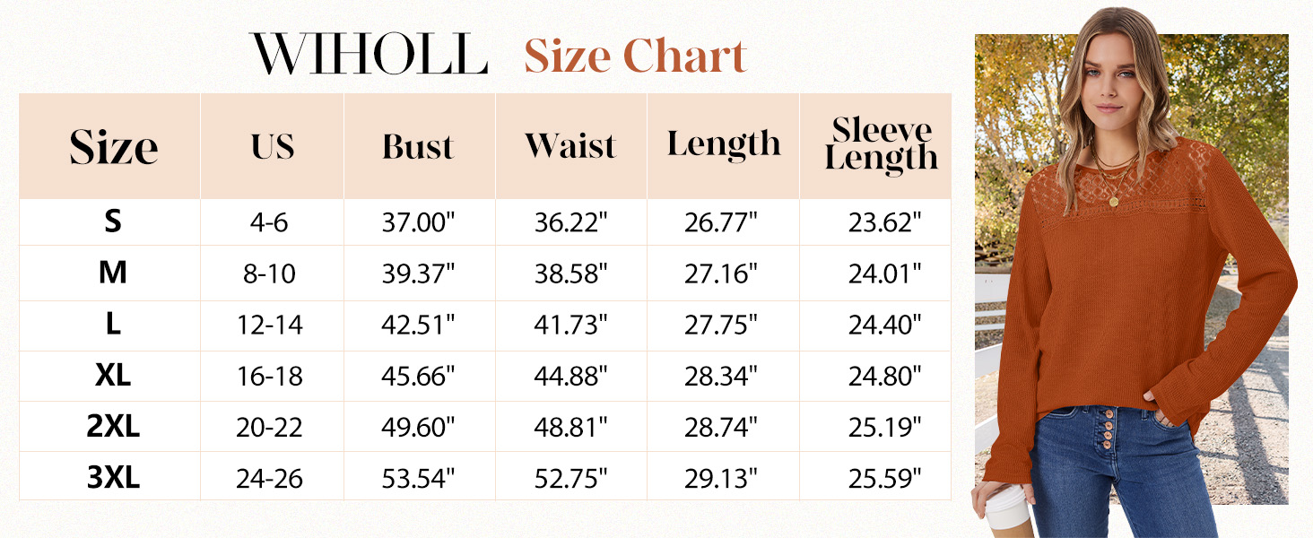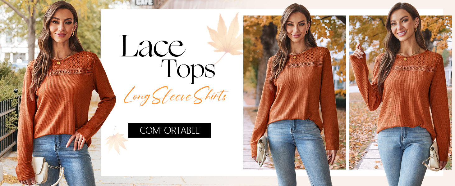 WIHOLL Women Blouses Long Sleeve Shirts Fall Fashion 2025 Lace Waffle Knit Tops