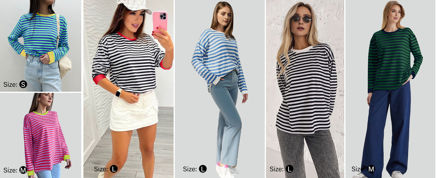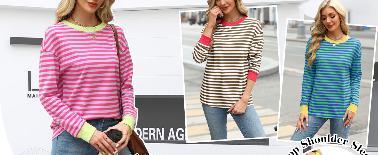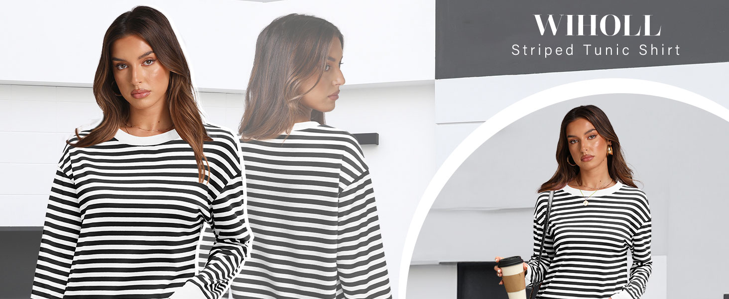 • WIHOLL Womens Tunic Tops Long Sleeve Striped Shirts Crewneck Tops